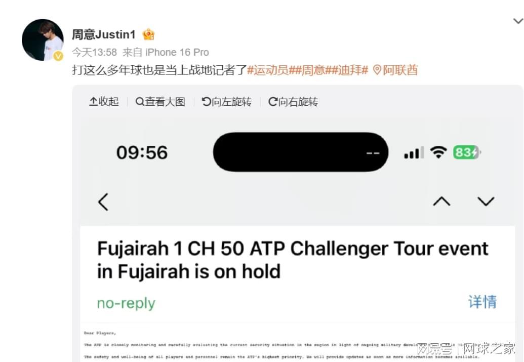 非常不幸的是,在ATP这41人之外,还真有中国球员被困在了阿联酋,他们就是周意和孙发京。